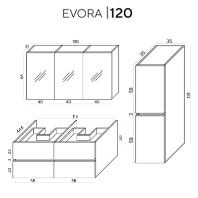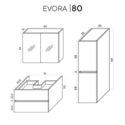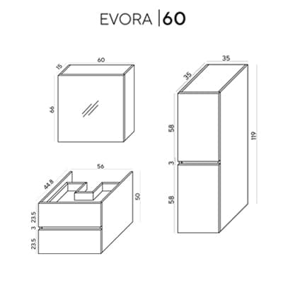 Etajer Lavabo uyumlu derin çift çekmeceli alt dolap