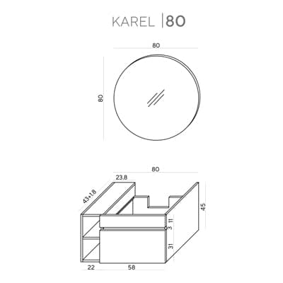 Etajer Lavabo uyumlu derin tek çekmeceli alt dolap