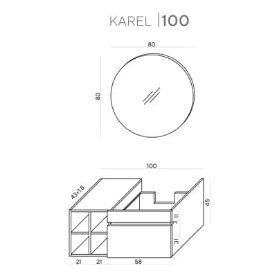 Etajer Lavabo uyumlu derin tek çekmeceli alt dolap