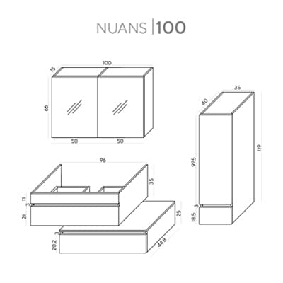 Etajer Lavabo uyumlu derin çift çekmeceli iki modül alt dolap