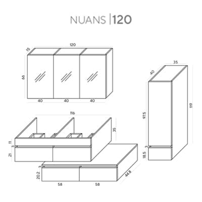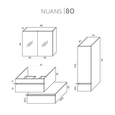 Etajer Lavabo uyumlu derin çift çekmeceli iki modül alt dolap